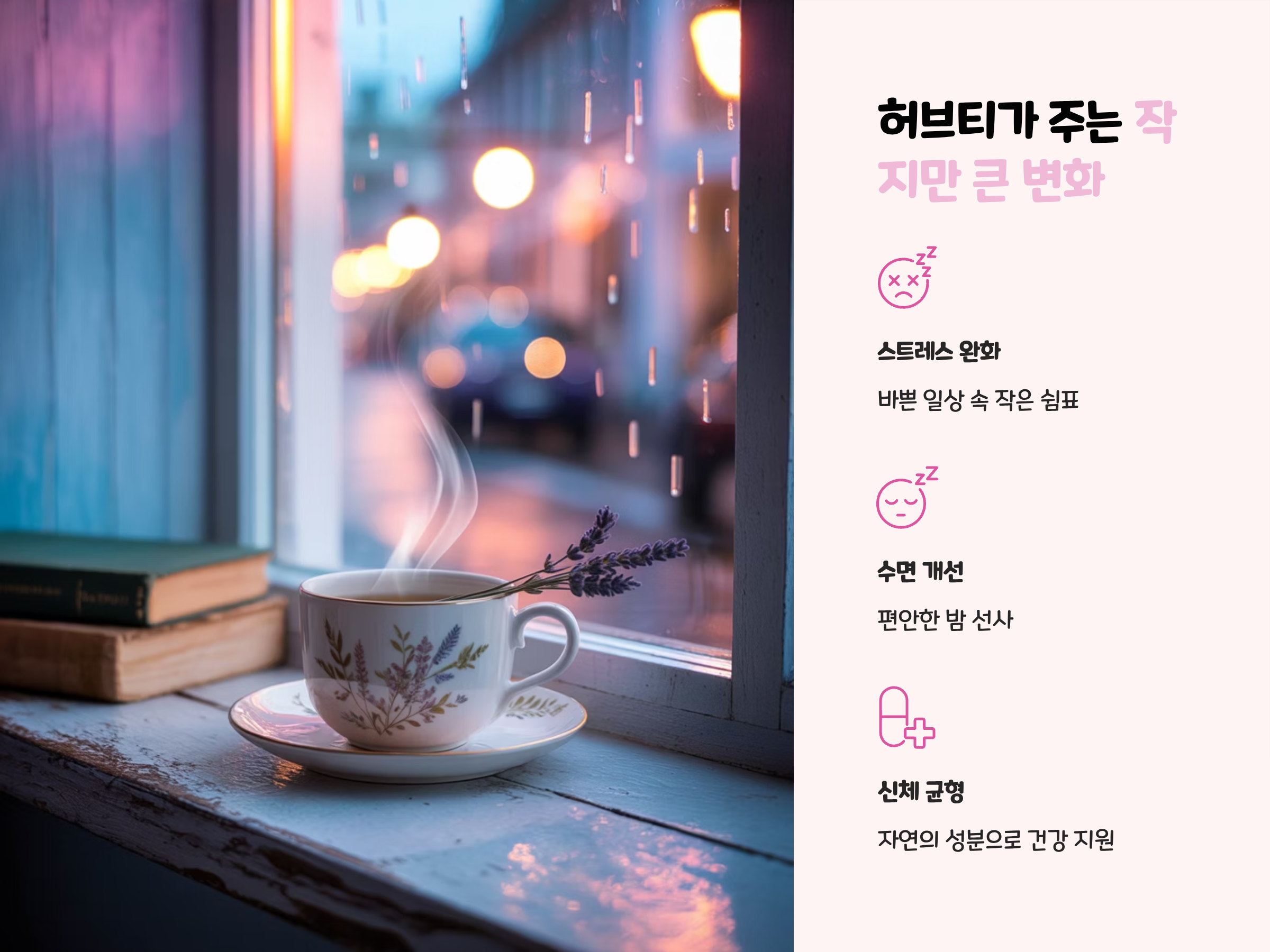 허브티는 단순한 음료가 아니라 ‘쉼’의 시작이었습니다.