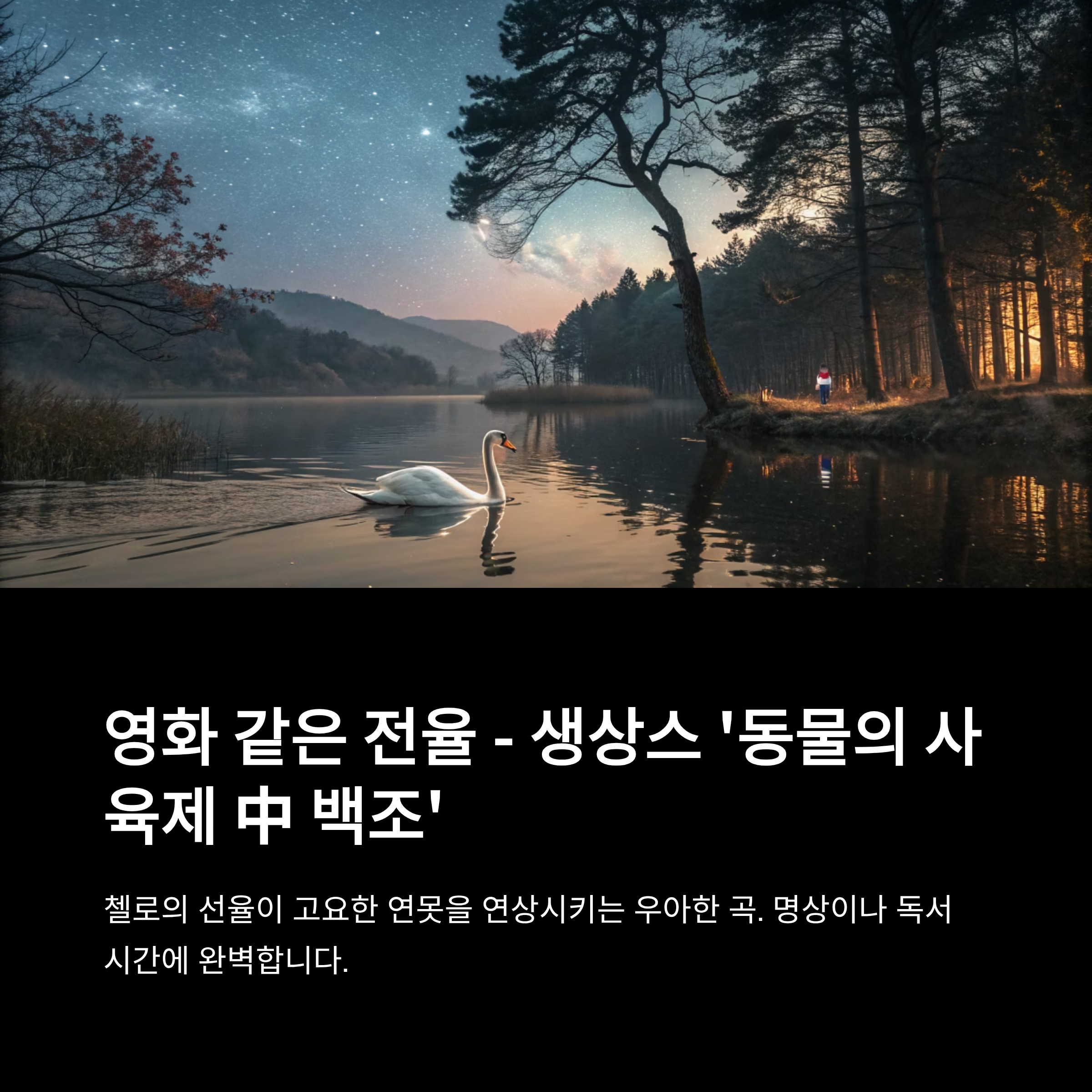 첼로의 선율이 고요한 연못을 연상시키며, 우아하고 감성적인 분위기를 전달합니다.
