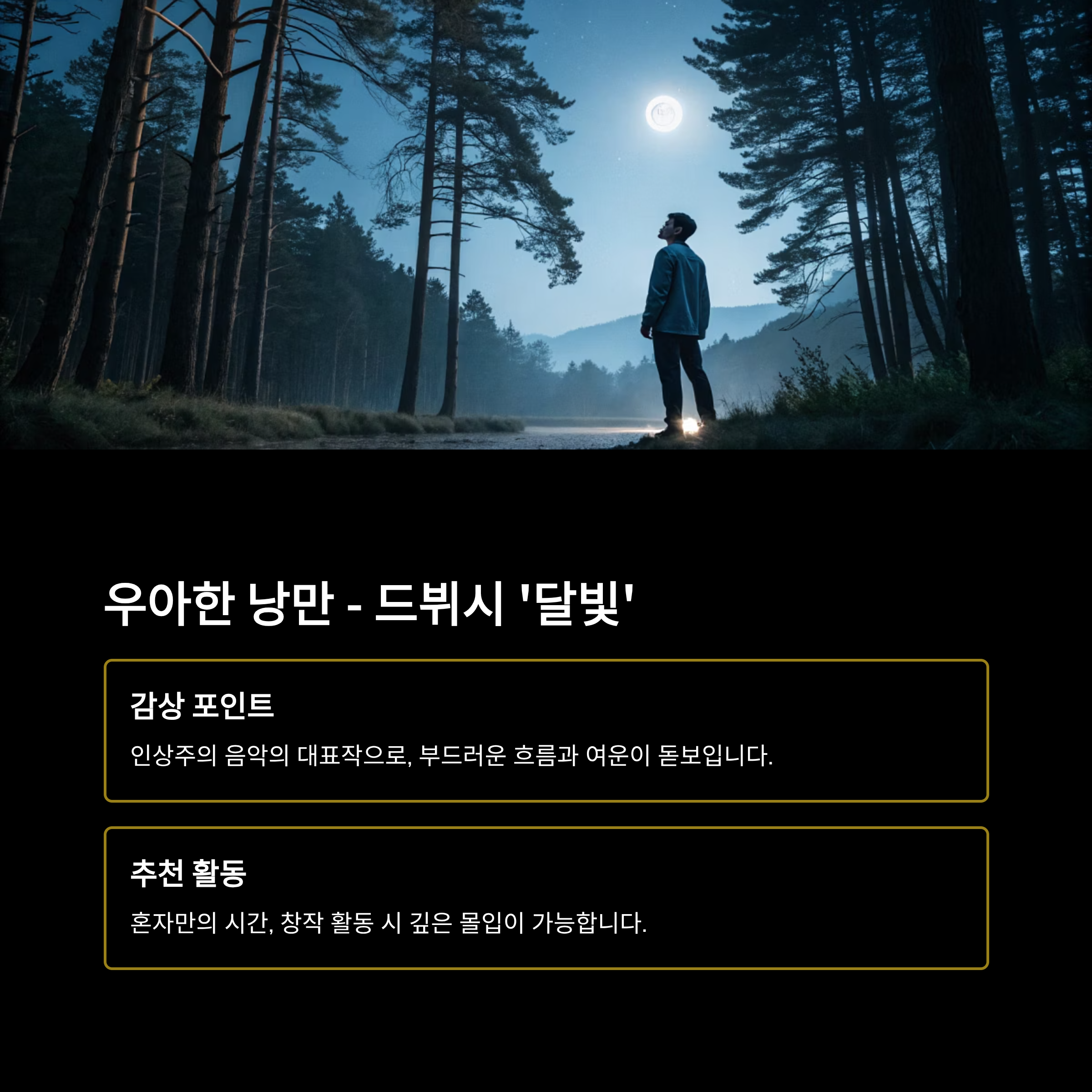인상주의 음악의 대표작으로, 부드러운 흐름과 여운이 돋보이는 작품입니다.