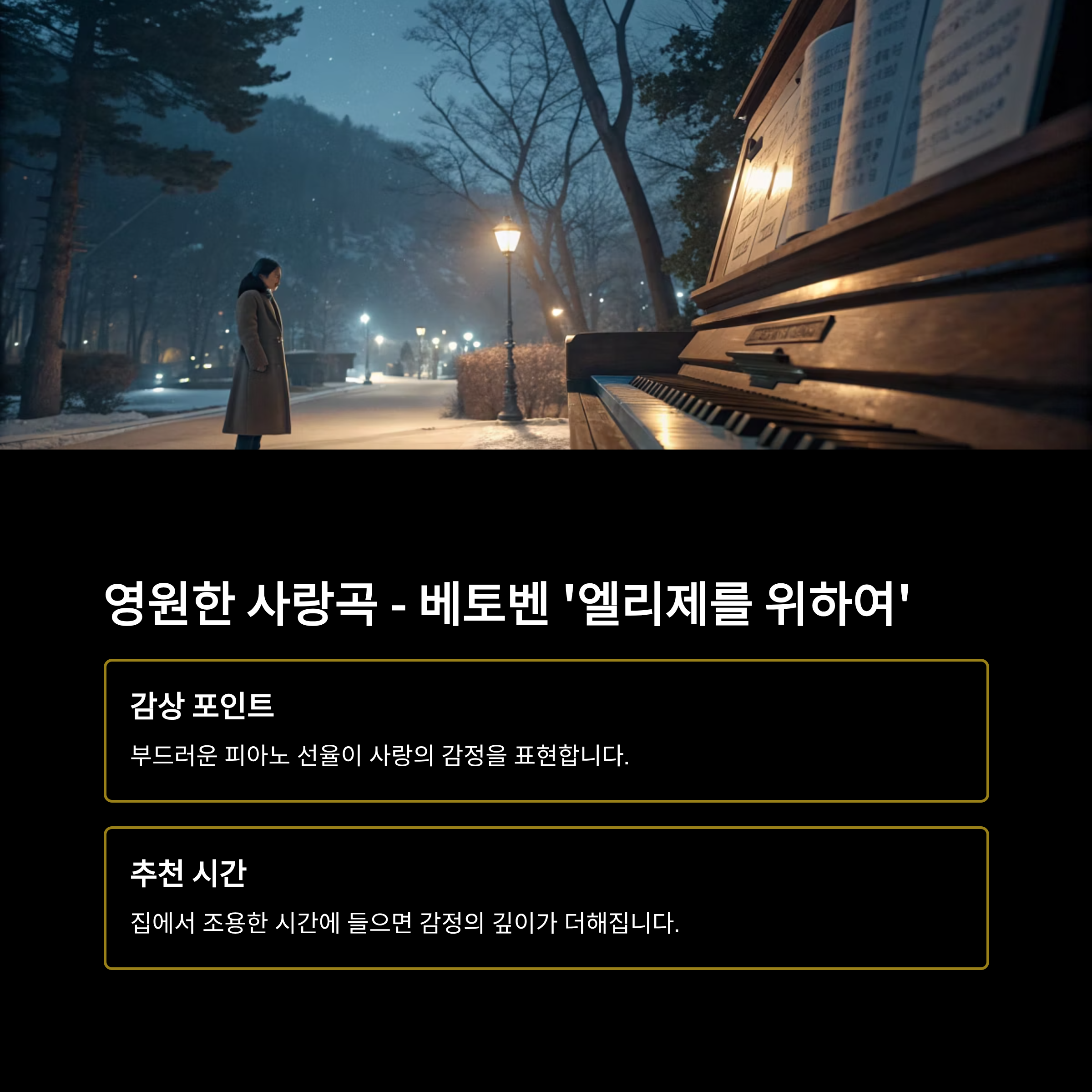 감성을 자극하는 클래식 명곡 10선을 아름다운 포스터 이미지와 함께 감상해 보세요. 2025년 7월 현재 기준으로 선별된 대표적인 클래식 곡들을 소개합니다.